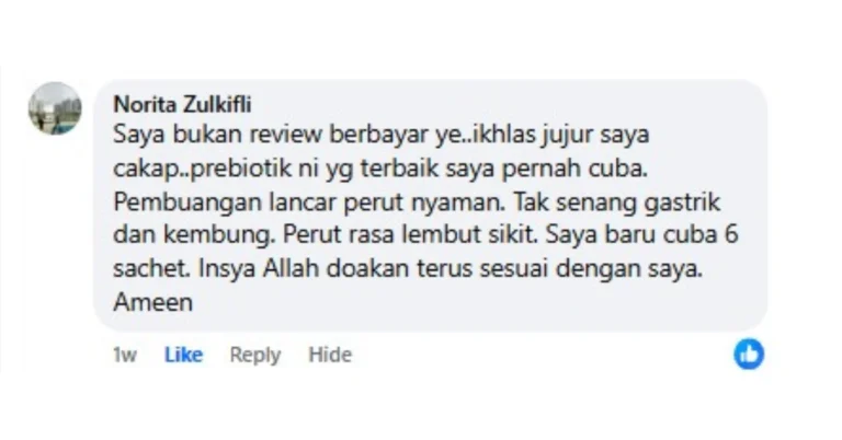 Makan 1 sachet sehari selepas makan berat. Boleh dimakan terus tanpa bancuh air